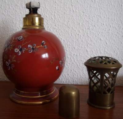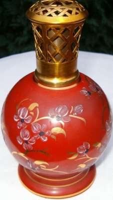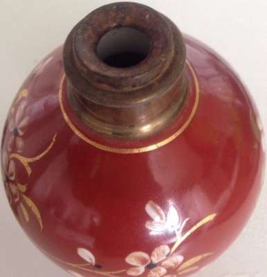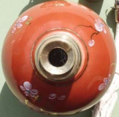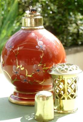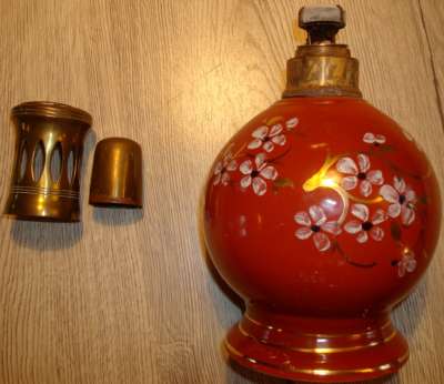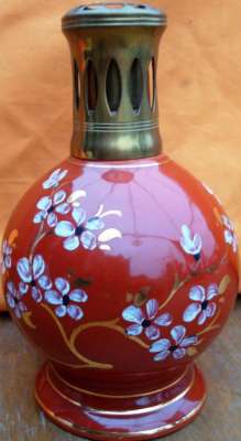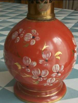 ico033  Ebay Cette Lampe Berger Paris AP Nacrée rouge par Couleuvre dont le cercle de dorure supérieur a quasi disparu a été adjugée le 13 Septembre 2016 au prix de 56 €