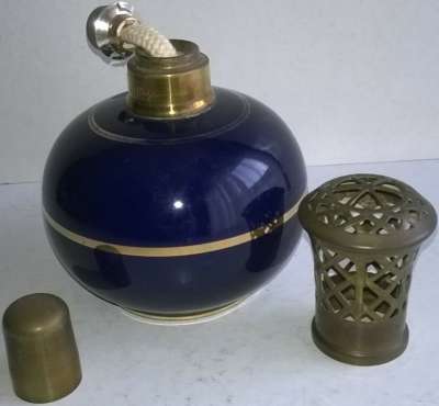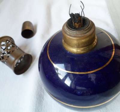 ico033 Étude de Maîtres Rois et Vaupres à Saint Pair sur Mer (50), Cette Lampe Berger Paris Revol FO Filets d'or bleu Sèvres a été adjugée au marteau le 10 septembre 2020 au prix de 15,00 €