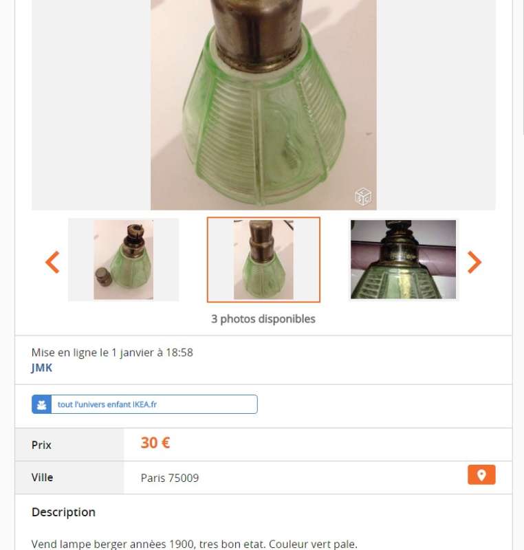 ico033 Leboncoin Cette Lampe Berger V Cannelée verte a été vendue le 6 janvier 2016 au prix de 30,00 €