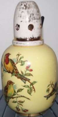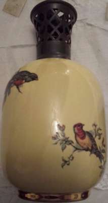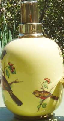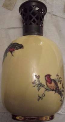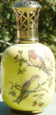 Ebay Cette Lampe Berger Paris SMLG RLT décor oiseau sur fond jaune avec monture d'origine malheureusement fêlée a été adjugée le 10 Août 2016 au prix de 61€
