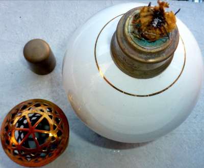 ico033 Cette Lampe Berger Paris Saint Méen Legrand Rivière Letort blanche et or sous la référence SA Boule claire était en vente sur Ebay.