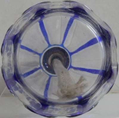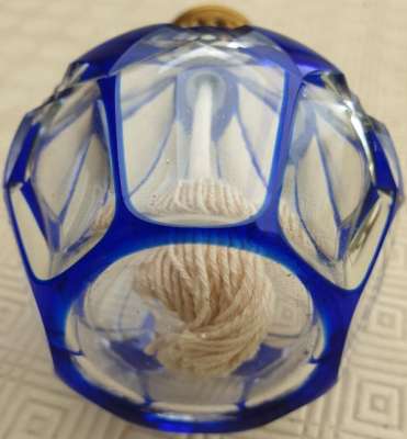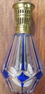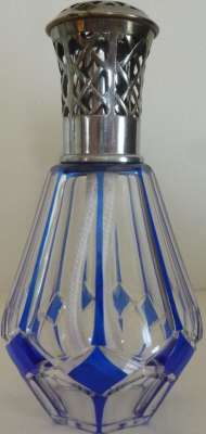 ico033 Étude de Maître Beghin à Pont Audemer (27), Cette Lampe Berger Paris en cristal de Saint Louis avec filets et petits losanges bleus a été adjugée au marteau le 2 mai 2022 au prix de 50,00 €
