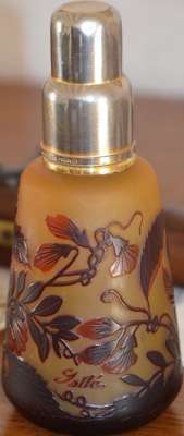 ico033 Cette fausse Lampe Berger Gallé disons plutôt qu'il s'agit d'un montage sur la base d'un vrai flacon Gallé etait en vente sur Ebay.