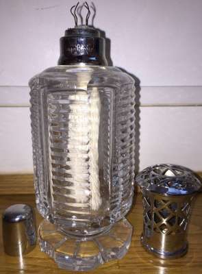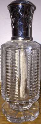 ico033 Cette Lampe Berger Paris Q Longue striée en cristal avec monture à croisillons argentée était en vente sur Ebay.