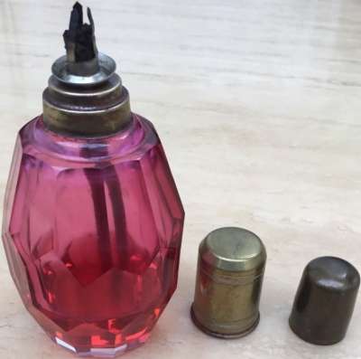 ico033 Cette Lampe à catalyse Lusac probablement en cristal irisé connu dans d'autres teintes a été adjugée le 01 Décembre 2015 au prix de 81,01 €