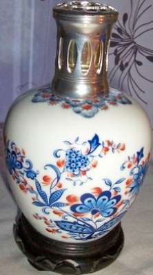 ico033 Ebay Cette lampe Berger avec des motifs floraux sur ton bleu avec un socle en bois ciselé noir a été adjugée le 25 mai 2012 au prix de 101,00 €