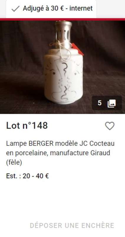 ico033 Ebay Cette Lampe Berger Paris JC Cocteau produite par Giraud a été adjugée le 6 décembre 2022 au prix de 26,50 €