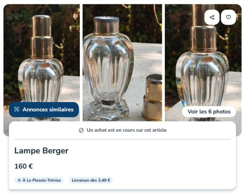 ico033 Leboncoin Cette lampe Berger P Amphore Baccarat miniature a été vendue le 16 aout 2025 au prix de 160,00 €