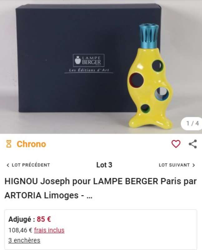 ico007 Ebay cette Lampe Berger du créateur Joseph Hignou nommée Nucléus sous la référence 5604 éditée par Artoria a été adjugée le 01 novembre 2024 au prix de 780,00 €