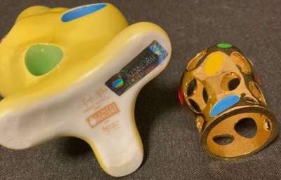 ico033 Étude Salorges Enchères Nantes (44), cette Lampe Berger du créateur Joseph Hignou nommée Nucléus sous la référence 5604 éditée par Artoria sans sa monture d'origine a été adjugée en vente online le 06 juillet 2025 au prix de 62,00 €