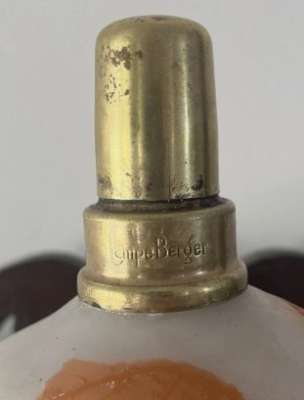 Je reste perplexe sur cette vente. L'acheteur visait le flacon ou l'ensemble passant pour une Lampe Berger. Il fallait voir que le flacon ne correspond pas à la forme officielle. Qu'ensuite l'embase provient d'un vaporisateur à parfum, la monture est une monture qui est très récente et non d'époque. Quand à l'étouffoir il est un peu plus agé que la monture mais beaucoup plus jeune que le flacon.