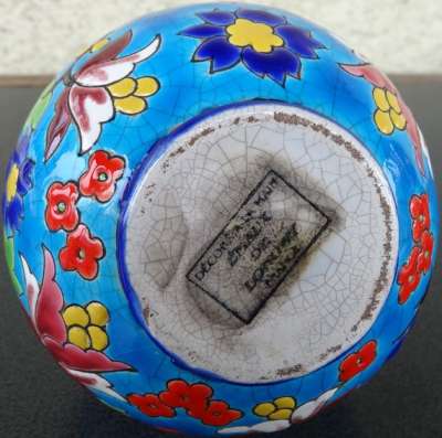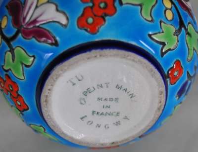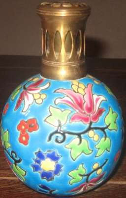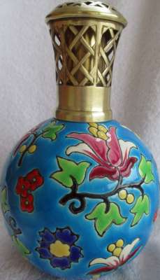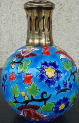ico033 Ebay Cette Lampe Berger Paris issue du moule Longwy N° 3494 pour une déco florale sur fond bleu a été adjugée le 21 Mars 2015 au prix de 81 €