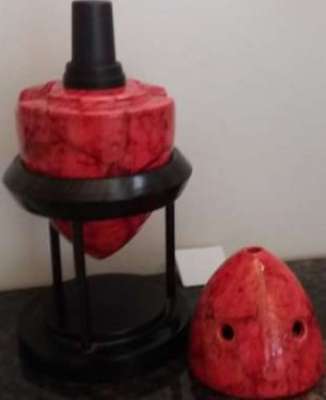 ico033 Cette Lampe Berger Paris 5168 AP par Pierre Casenove dans des tons marbré rouge était en vente sur Leboncoin.