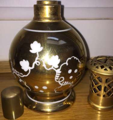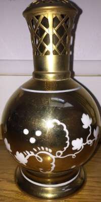 ico033 Cette Lampe Berger Paris AU Or et Blanc produite par Couleuvre et sa vigne galopante était en vente sur Ebay.