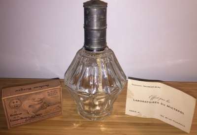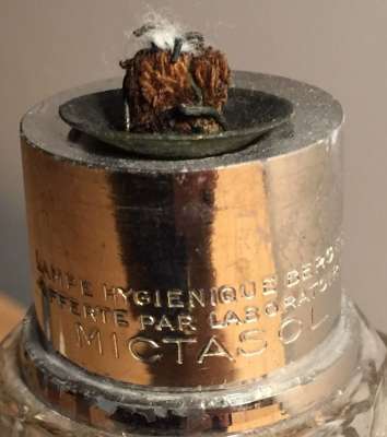 ico033 Cette Lampe Berger Paris B12 côtes haute estampillée Mictasol avec carte de visite du laboratoire était en vente sur Ebay.