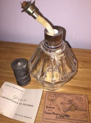 • Lampe Berger B12 côtes haute estampillée Mictasol avec carte de visite du laboratoire