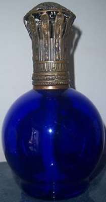 ico033 Cette lampe Berger E Boule bleue avec une monture en bronze était en vente sur Ebay.
