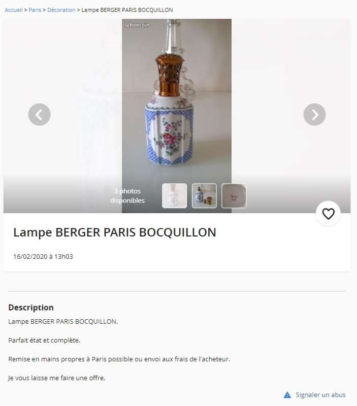 ico033 Leboncoin cette Lampe Berger Paris K Bocquillon a été négociée le 18 février 2020 au prix de 200,00 €