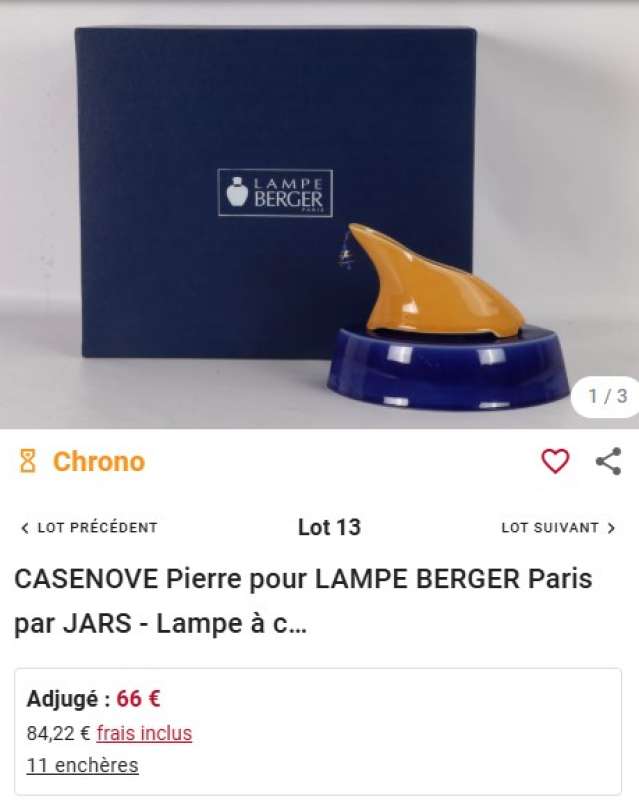ico033 Ebay cette Lampe Berger 5723 Shako par Pierre Casenove a été adjugée le 15 octobre 2023 au prix de 150,00 €